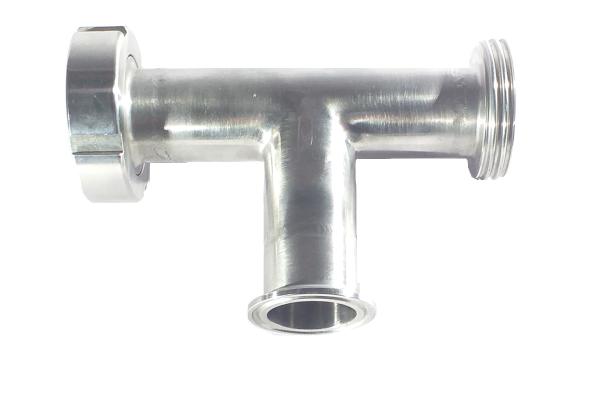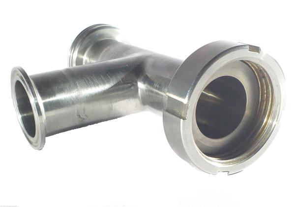 TEE DE ACERO INOXIDABLE, FABRICADA A MEDIDA, CONEXIONES DE LOS EXTREMOS TIPO MACHO- HEMBRA, SALIDA CLAMP. LO PODÉS PEDIR CON ROSCA DIN, DANESA, FAFEUR, CLAMP, PARA SOLDAR. PROVINOX ACEROS INOXIDABLES.